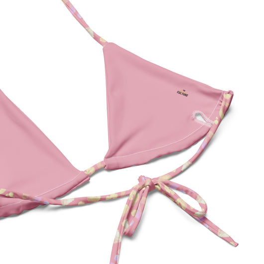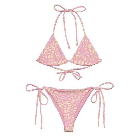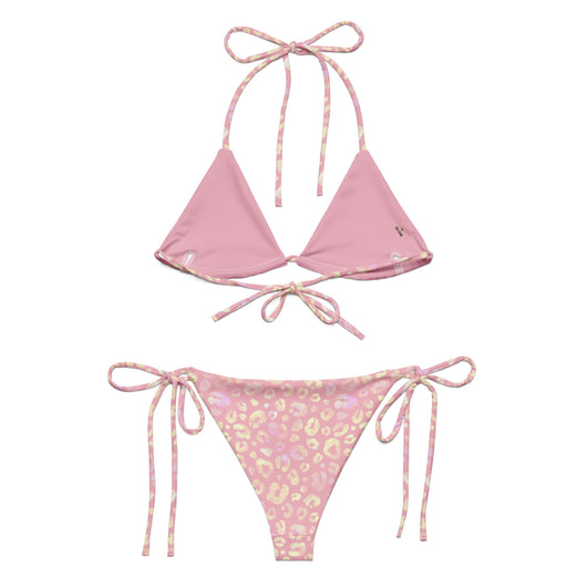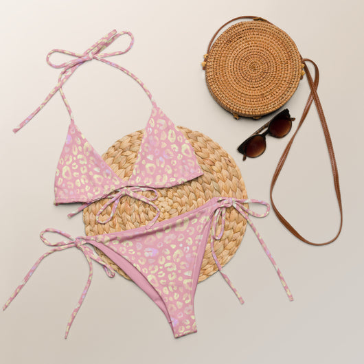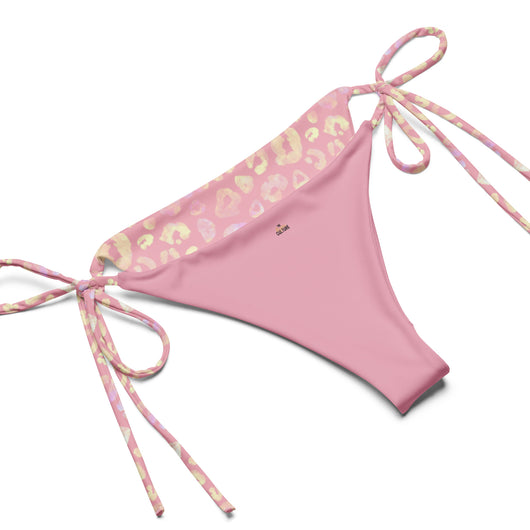 The Hyper Culture | 2XS - 6XL | Stay stylish and comfortable with the Savage Chic Recycled String Bikini. Made from soft recycled polyester with UPF 50+ protection, it features a gorgeous pink leopard print. Customize the straps and enjoy your summer.